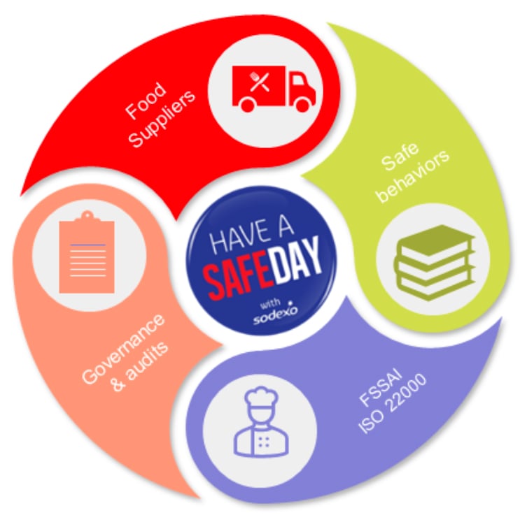 Sodexo has established and certified systems like ISO 22000 which are underpinned by a strong culture of food safety from top management to the teams working with food on a daily basis. Our teams go through many hours of training and are armed with simplified tools and procedures like visual guides and checklists for everyone to follow. This strategy, combined with periodic food safety audits, helps to drive compliance, behavioural change and continuous improvement.